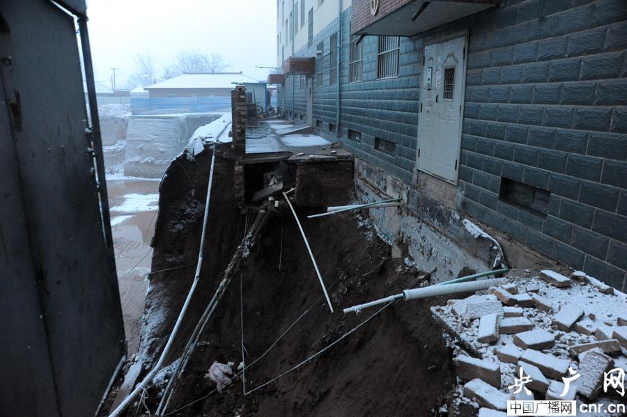 被自來水管沖坍陷的地基(央廣網發(fā) 羅明偉 攝)