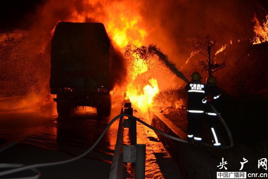 央廣網寧波3月18日消息(記者曹美麗 通訊員孫岑 梁志勇)昨晚18時52分,浙江省奉化市溪口鎮甬金速高速寧波往金華方向沙溪出口不到到2公里處,一輛裝載30多噸塑料顆粒的貨車發生自燃,火勢兇猛造成高速交通一度堵塞。經消防官兵全力撲救,一個多小時后大火被成功撲滅。