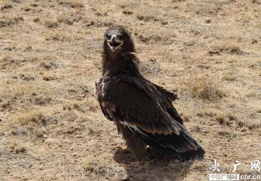 受傷后不能飛翔的草原雕(央廣網發 孫智廣攝影)