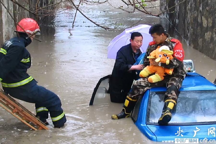 孩子救到車頂(央廣網記者 建強 浩樺攝)