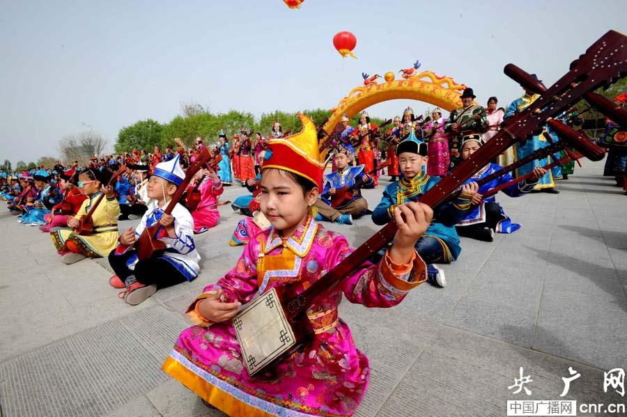 百名學(xué)生彈奏托布秀爾(央廣網(wǎng)記者 張雷 攝)