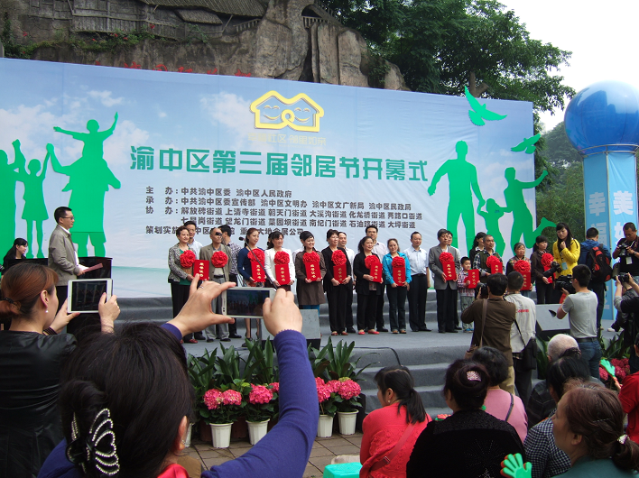 渝中區(qū)“鄰居節(jié)”活動自2012年5月20日成功舉辦以來,今年已是第三屆,活動很好的促進了社區(qū)的和諧發(fā)展、融洽了鄰里關(guān)系、提升了市民幸福指數(shù),為此每年舉辦一屆的“鄰居節(jié)”也成為了真正屬于廣大市民朋友的節(jié)日。三年來,渝中區(qū)各街道、各社區(qū)更是涌現(xiàn)出了一大批“好鄰居”典型。本屆鄰居節(jié),通過居民推薦、社區(qū)評選公示、街道統(tǒng)籌把關(guān),共評選出78對“好鄰居”家庭,在今天上午舉行的開幕上,他們獲得了“好鄰居”家庭榮譽證書。