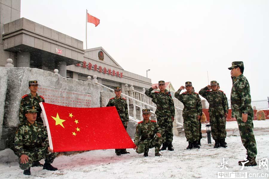 今天,海拔5100米的帕米爾高原下起了鵝毛大雪,駐守在中巴邊境的紅其拉甫邊防檢查站前哨班官兵冒著風雪嚴寒,莊嚴宣誓:牢記神圣職責,永葆模范旗幟本色,堅決守好國門。官兵們表示:繼承和發揚紅其拉甫新老“三特”精神,艱苦不怕吃苦,缺氧不缺精神,出色完成本職工作,為模范旗幟增光添彩奉獻青春和力量,為守好西部國門,為新疆社會穩定和經濟發展做出應有的貢獻。