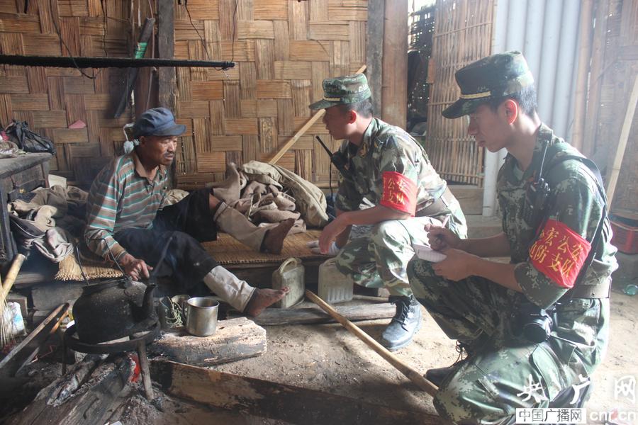 邊防官兵深入村中走訪慰問受傷群眾(央廣網發 王林 攝)