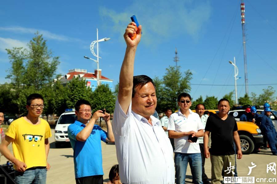 新疆阿拉山口市市長尤力瓦斯·巴吐爾鳴槍發令(央廣網記者 張雷 攝)