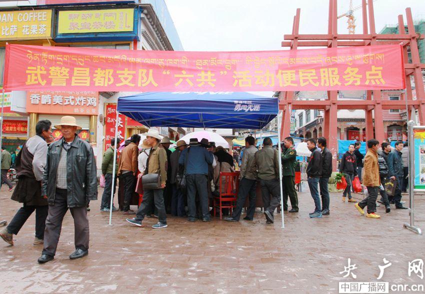 支隊官兵們設立便民服務點服務群眾(央廣網記者 普布次仁 攝)