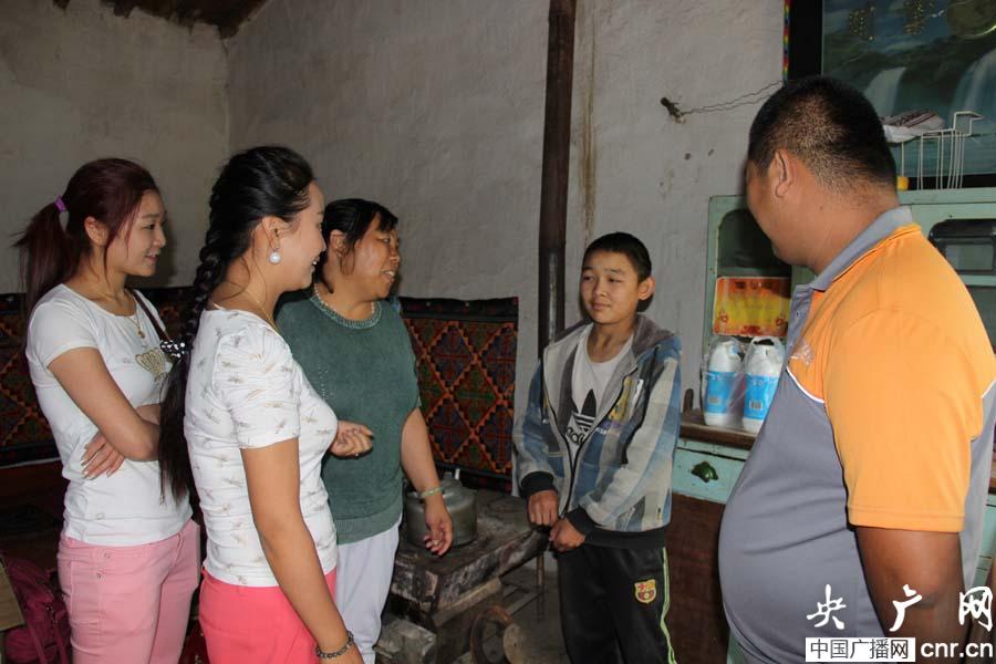 當大家一起將募捐來的4500元錢和一些生活用品送到了哈尼手中時,小哈尼哽咽了起來。哈尼說:“我爸爸以前說,讓我一定要好好學習,考上大學。老師、叔叔、阿姨、姐姐們,我非常謝謝你們,你們幫助了我,我一定要好好學習!罢敶蠹覈谝黄穑瑸檫@個貧困家庭未來的生計謀劃時,吉布庫鎮統戰干事巴尼哈給小哈尼一家帶來了三個月的低保金1700多元,還帶了一個好消息。她說:“85平米的牧民定居房子,自籌款2萬多塊錢也是鎮上解決的,她一分錢都不用掏,十月份直接住房子就行了!