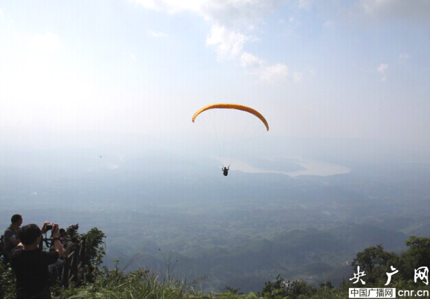 挑戰(zhàn)選手向遠(yuǎn)處的長江飛去(央廣網(wǎng)記者 陳代澤 攝)