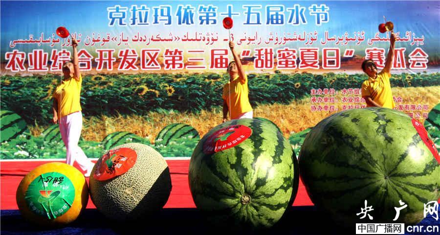 新疆克拉瑪依市舉辦第三屆“甜蜜夏日”賽瓜會(周建玲攝)(央廣網記者 張雷 攝)