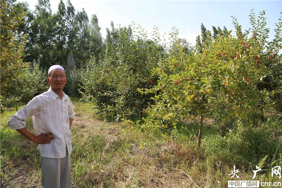 馬金貴看著果樹上密密麻麻的海棠果,卻高興不起來(央廣網記者 張雷 攝)