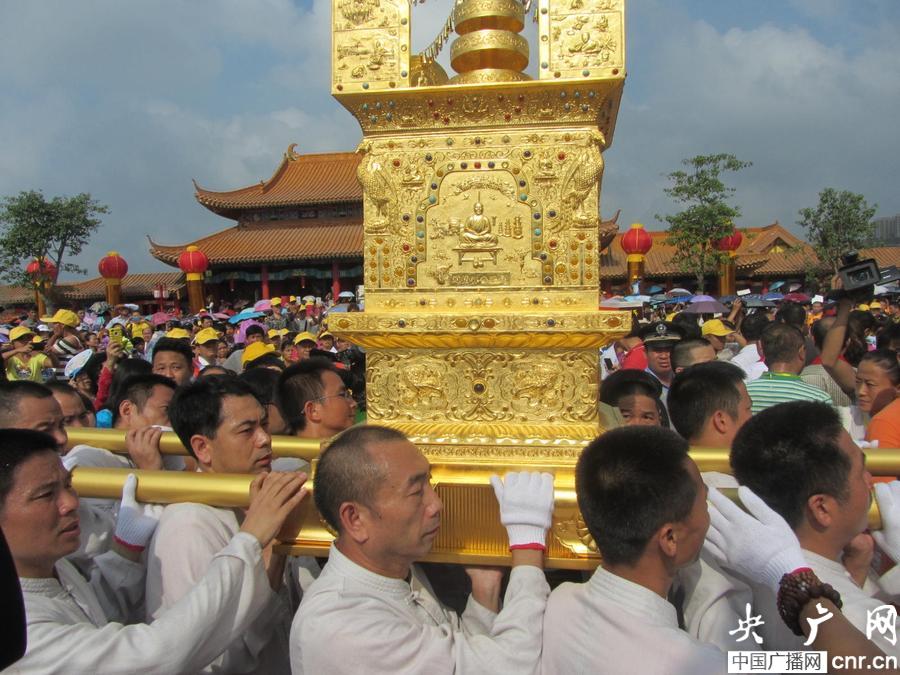 海南省澄邁金山寺萬福長壽藥師塔佛像開光暨恭迎本煥長老舍利供奉祈福大典今日舉行(央廣網(wǎng)記者 朱永 攝)