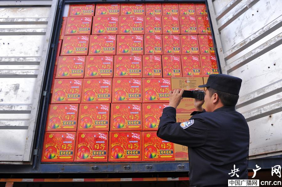 北京破獲今冬以來首起非法運輸煙花爆竹案件 收繳煙花爆竹1800箱(央廣網(wǎng)記者 李文蕊 攝)