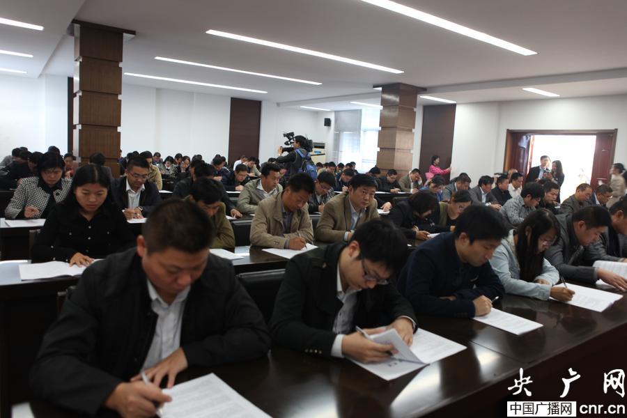 11日上午,江寧區(qū)東山街道4樓會(huì)議室,100名村干部參加廉政知識(shí)集中測(cè)試。(央廣網(wǎng)記者 景明 攝)