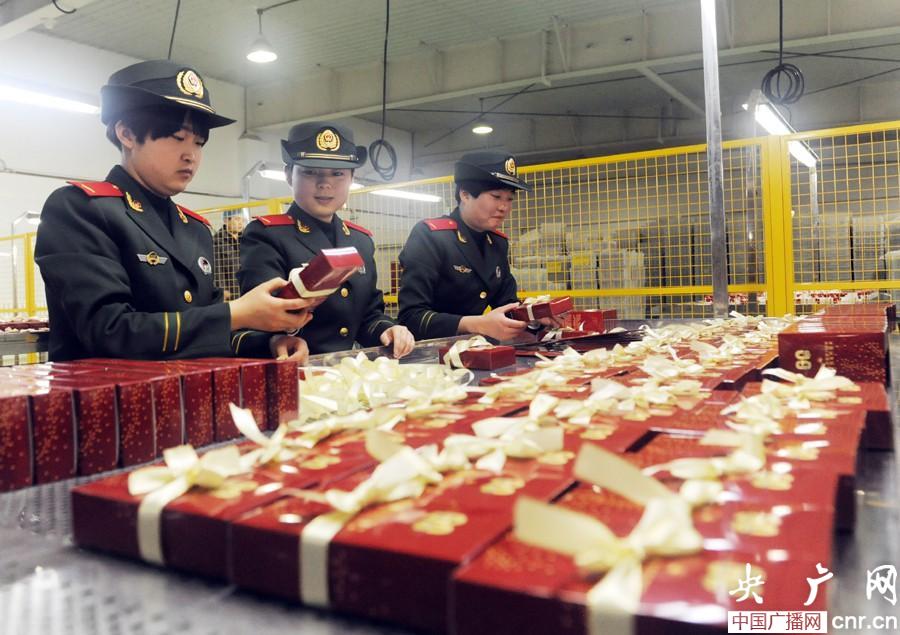 新疆邊防總隊女兵義務包裝紅棗禮盒(秦梅花攝)