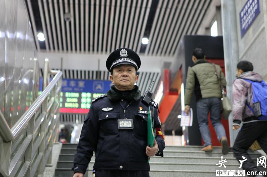 央廣網貴陽2月11日消息(記者王珩 陳玉 通訊員郭紅攝)“老李啊,這些東西堆在這里,把消防通道堵啦,馬上叫人來搬走啊!”“小伙子,別拿根煙聞來聞去過干癮,等下忍不住想抽就麻煩了,這地方抽煙有啥后果你清楚啊!”春運中,在貴陽火車站,隨時可以看到一位皺紋滿臉、拿著文件夾匆匆穿梭的老民警身影,聽到這樣殷殷叮囑的話語。