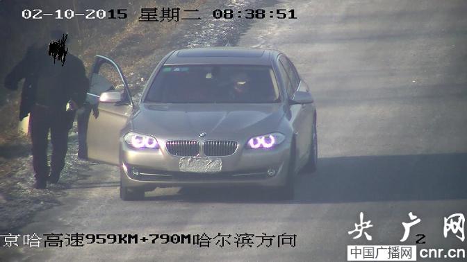 吉林高速駕駛員停車遮擋號牌 ,監控錄像拍下全程(央廣網記者 于中濤 攝)