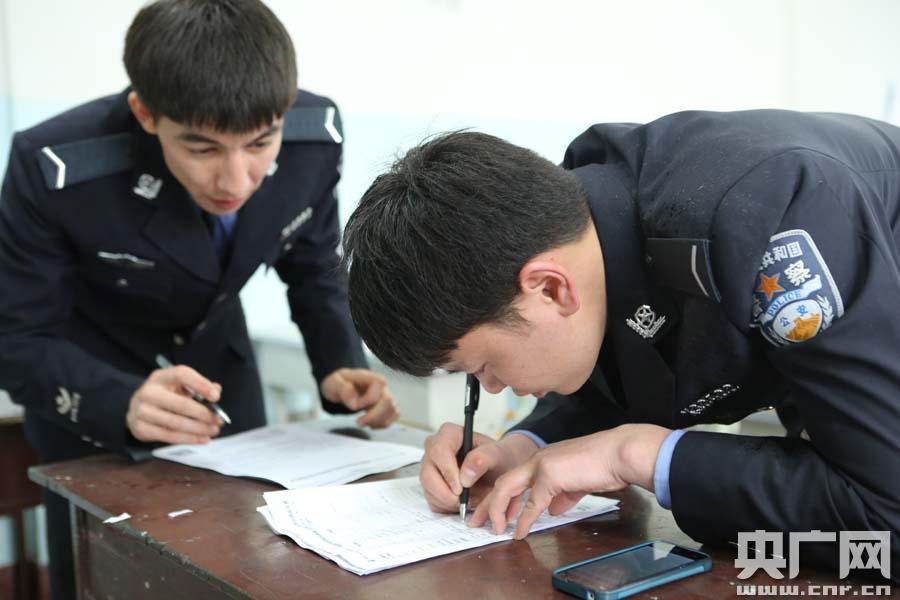 上午11點,新疆警察學院應屆畢業學員整齊劃一地在招聘場地排隊,等候填寫報名表、測量身高。現場前來報名的多達500多人中,有300多名學員符合條件,順利進入目測環節。在目測中,考評組通過學員的言談舉止、綜合氣質進行初步篩選,而著裝得當、具親和力、細節意識較強的學員更容易受到評委青睞。