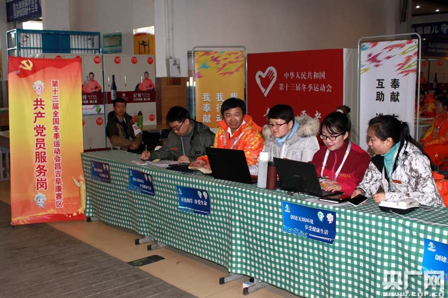 央廣網(wǎng)阜康1月30日消息(記者張雷 阜康臺記者王新剛 郭剛)在第十三屆全國冬季運動會新疆阜康賽區(qū)天山天池國際滑雪場,人們隨處都能見到胸前佩戴共產(chǎn)黨員“先鋒崗”標示的500多名黨員在為“十三冬”服務忙碌的身影。