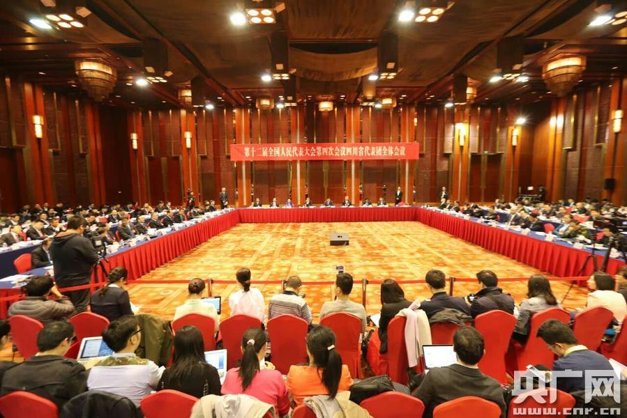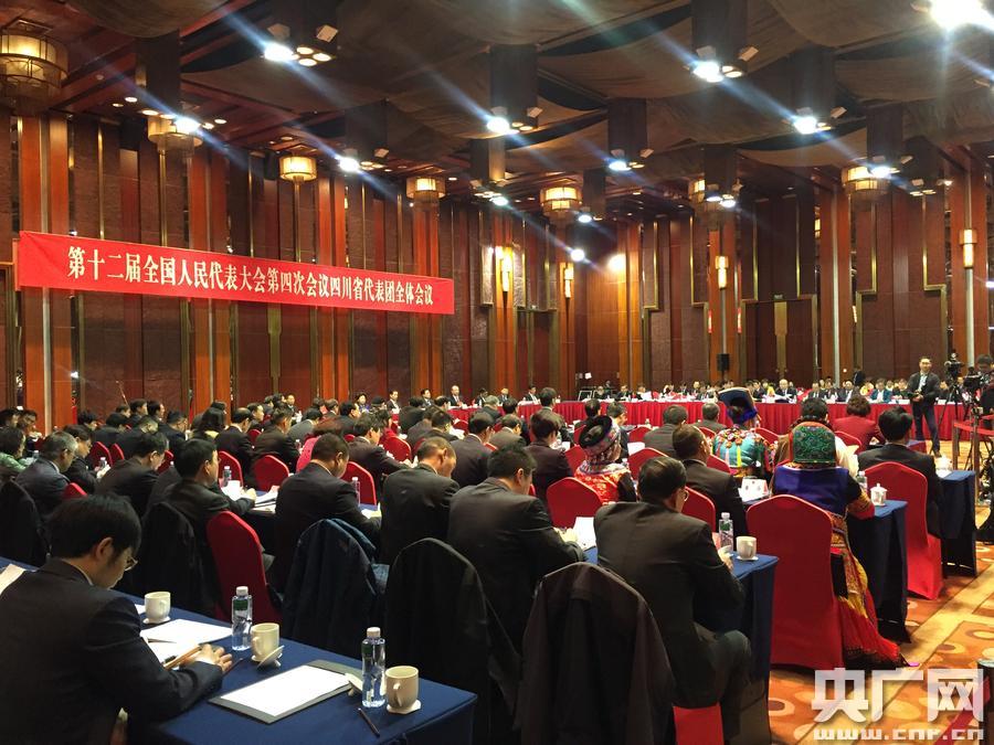央廣網北京3月8日消息(記者韓民權)8日上午,第十二屆全國人民代表大會第四次會議四川省代表團全體會議在北京國際飯店舉行,繼續審議政府工作報告,同時審查計劃報告、預算報告。會議向媒體開放,代表們現場回答了國內外記者的提問。