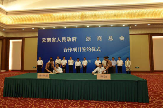 浙商總會同云南省政府簽署了《浙商總會助力云南脫貧攻堅幫扶協議》以及23個招商引資及產業合作項目協議。涉及電子商務、生物科技、商貿物流、旅游文化、高原特色現代農業等多個領域,總金額達338億元。其中,昆明市政府、云南滇中新區與浙商總會簽訂框架合作協議,協議總額達200億元。