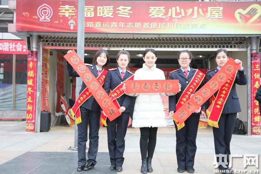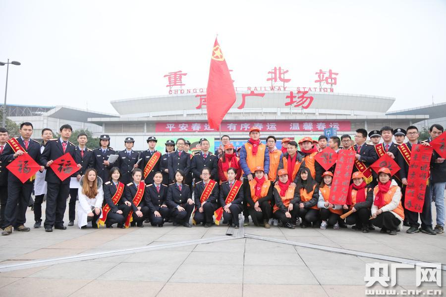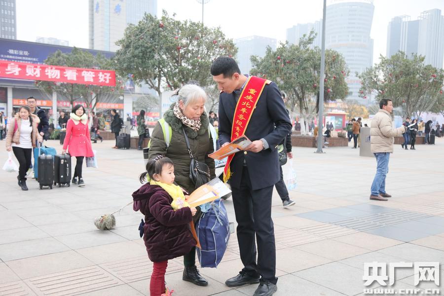 團支部積極與地方團委協調聯系,廣泛開展了春運首日志愿者服務活動。 (張婧星 攝) 央廣網重慶1月13日消息(記者劉湛)2017年鐵路春運今天拉開大幕。為順利實現“平安春運、有序春運、溫馨春運”的目標,重慶車站、重慶北車務段、重慶公安處、重慶疾控所等鐵路部門在重慶火車北站南廣場聯合開展了重慶片區“幸福暖冬 青春同行”志愿服務春運首日集中行動,為廣大旅客提供導購導乘、重點旅客協助、安全知識宣傳、陽光愛心救助等志愿服務。 在活動現場,志愿者們積極引導旅客到售票廳買票取票、為旅客發放鐵路春運宣傳資料,向旅客介紹高鐵的安全、方便、快捷以及服務的溫馨。青年志愿者在廣場上為旅客表演了“快閃”,并為旅客書寫、贈送春聯。此次活動服務旅客上千人次,得到旅客的一致好評。 同時,在車務段團委的號召下,管內各站團支部積極與地方團委協調聯系,廣泛開展了春運首日志愿者服務活動。 -