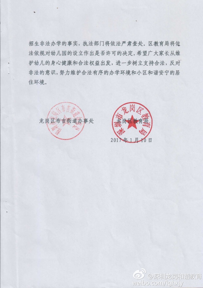 今天記者通過“深圳龍崗和諧教育”的微博看到了深圳龍崗教育局2月16日發出的情況通報:
