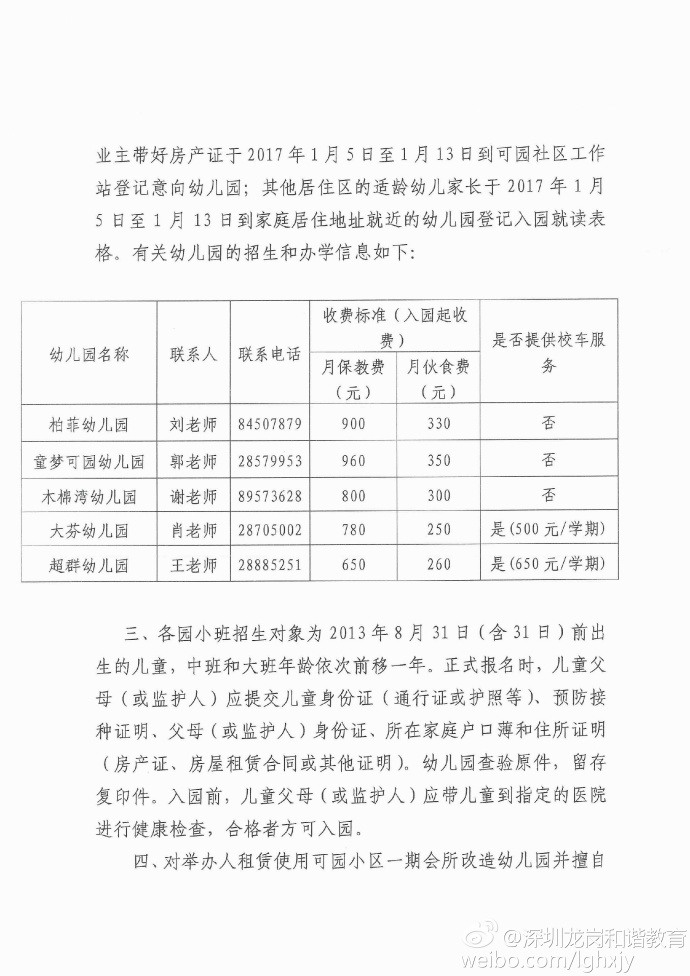2017年1月10日,布吉街道辦、我局聯合發布《致家長的一封信》,提醒家長在2016—2017學年第二學期就讀時,務必選擇經教育部門許可的合法正規幼兒園,并到社區工作站進行登記,以便做好學位預留。屬于可園小區的適齡幼兒,布吉教辦將協調安排入讀小區配套的柏菲幼兒園或童夢可園幼兒園;其他適齡幼兒安排入讀就近的普惠性幼兒園。