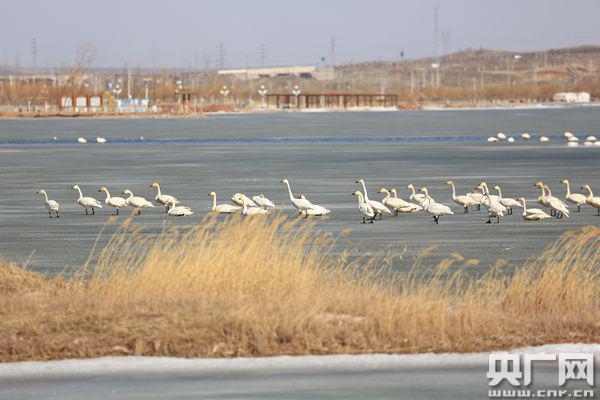 央廣網呼和浩特3月21日消息(記者鄭穎 攝影華瑞鋒)三月下旬的內蒙古邊疆,冰雪尚未融盡,內蒙古伊金霍洛旗東紅海子濕地公園迎來大量北歸的候鳥,遺鷗家族悠閑漫步。濕地上,或三四只成群,或者十幾只一起,時而悠然踱步,時而梳理羽毛,時而翩翩起舞,場面頗為華美。候鳥不是濕地的“常住居民”,他們會為自己選擇環境良好、安全無憂的棲息地。候鳥活動,被認為是濕地生態好壞重要標識,能夠讓人最直觀的了解湖泊河流等水域自然環境的變化。