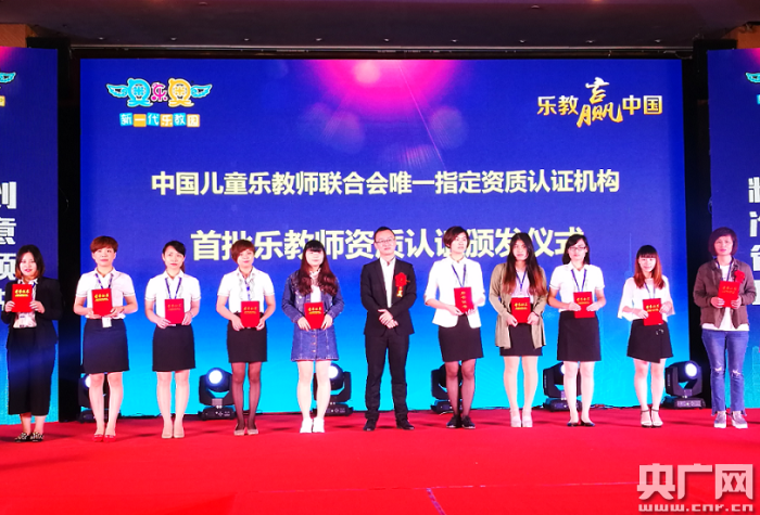 活動中,中國兒童樂教師聯合會向一批優秀的教師頒發了樂教師資質認證書。中國兒童樂教師聯合會秘書長、廣州奧樂奧兒童用品有限公司總經理王輝表示,中國樂教產業目前尚處于啟蒙階段,現有的中國的傳統兒童產業已經不能滿足80后、90后家長的需求,年輕一代父母更加重視孩子的娛樂與教育,新一代樂教園“德智體美勞”五維樂教系統應運而生,倡導創新整合,形成“師德為重、孩童為本、寓教于樂”的樂教師考核標準,推動孩子全面發展。