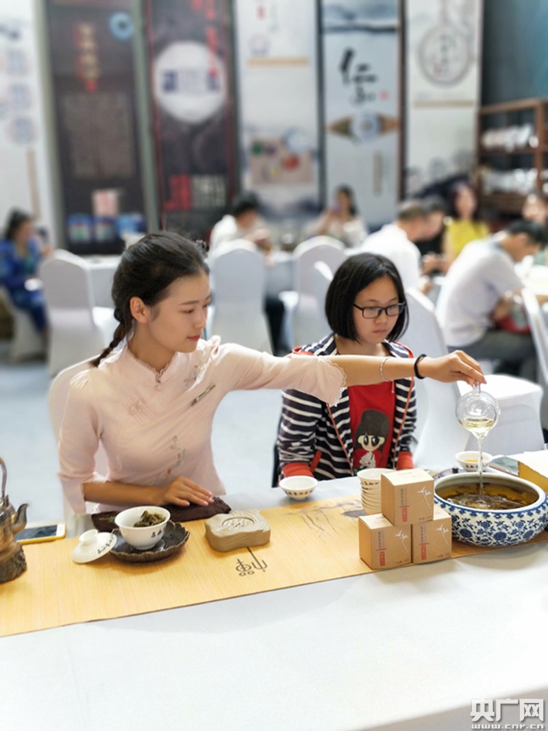昌泰集團茶藝師潘雨說:“我們準備了一些與參觀者互動的環節,比如拍照片發朋友圈集齊一定數量的贊就可以獲得相應的茶禮。在茶博會期間,我們線上線下都有活動,還會邀請愛茶人士參加35年老茶現場茶藝表演及品鑒。在展會閉幕后,品鑒活動將在昆明持續進行。”