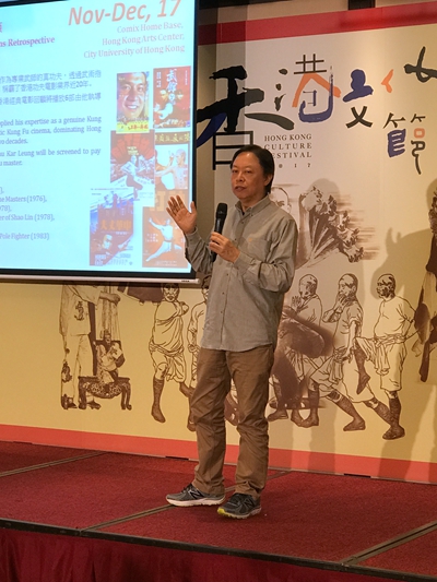 “香港文化節”繼去年舉辦“客家功夫三百年——數碼時代中的文化傳承”展覽為市民帶來嶄新的功夫體驗后,本年度再下一城,以“視覺探視香港文化”為主題,為市民帶來另一震撼的展覽——“電影 ··社群 · 百年嶺南洪拳”! 利用嶄新科技重現一代洪拳宗師林世榮的精嶄武學,并向香港早年由劉家良師傅執導的武術電影致敬。此外,在文化節期間,其他精彩的展覽及表演藝術包括﹕道教音樂、水墨聯展、香港經典電影回顧、龍獅文化匯演、客家麒麟及功夫文化耀香江等。其中非物質文化遺產市集將把尖沙咀文化中心廣場變身成一個廟會形式的嘉年華,讓市民及游客透過一系列介紹、表演及互動游戲去認識及深入了解如涼茶、大澳端午節游涌、扎作技藝,及港式奶茶制作技藝等本土的非物質文化遺產。