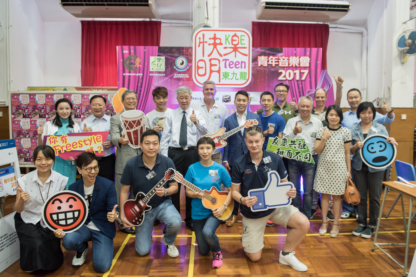 主禮嘉賓有東九龍總區(qū)指揮官麥國(guó)兆助理警務(wù)處長(zhǎng)、樂兒計(jì)劃成長(zhǎng)基金副主席陳李妮女士、香港道教聯(lián)合會(huì)圓玄學(xué)院第三中學(xué)李世基校長(zhǎng)及快樂明TEEN委員會(huì)主席陳耀雄先生,在熱鬧的氣氛中,揭幕禮上揮動(dòng)結(jié)他,音樂會(huì)正式開始,當(dāng)日將軍澳、秀茂坪、觀塘及黃大仙警區(qū)的指揮官均有到場(chǎng)支持。