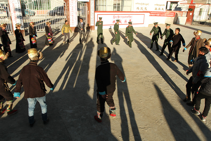 開幕式結束后,歡快悠揚的鍋莊舞旋律慢慢響起,多吉平措和村民們圍成一圈,揮舞著長袖伴隨旋律跳起歡快的鍋莊。多吉平措說,我們歌頌現今幸福生活,感恩黨的惠民政策的同時也對未來充滿信心。