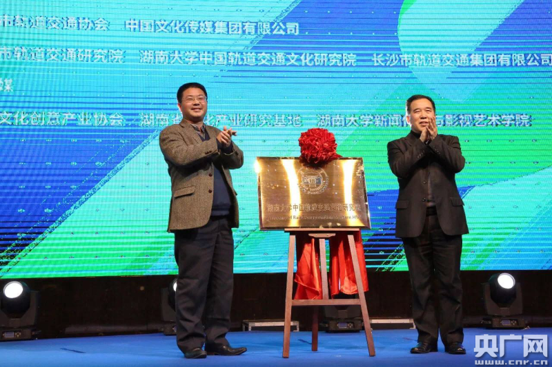 論壇期間還舉行了國內首家城軌文化研究院——湖南大學中國軌道交通文化研究院揭牌儀式。湖南省文化廳副廳長肖凌之、湖南大學副校長曹一家共同為研究院揭牌。湖南大學中國軌道交通文化研究院院長彭祝斌和執行院長伍定均為研究院首批特聘專家頒發了聘書。