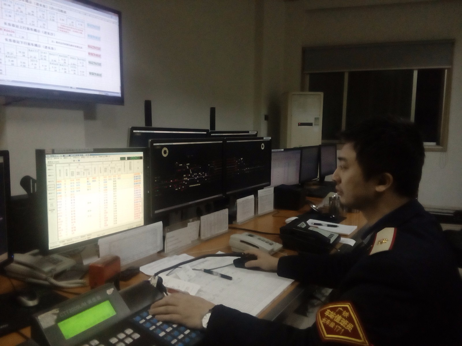 央廣網長沙2月12日消息(記者鄧文輝 通訊員石磊 周宣珊)“客車K22次開過來,南客線通過……”2月12日凌晨2時20分,廣鐵集團長沙東站信號樓里,28歲的車站值班員蔣鼎一邊有條不紊地喊著聯控用語,一邊點擊鼠標確認電腦上的列車運行計劃,然后盯著身旁的信號員點擊信號按鈕、開放信號,確認光帶正確后,他剛端起茶杯,發現下行列車又接近了,調度電話也響了起來……