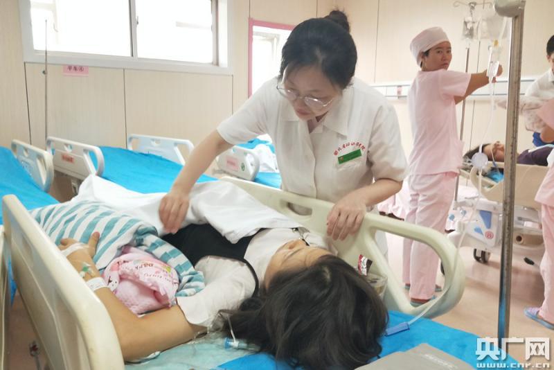 圖為尹主任在觀察室檢查產婦產后恢復情況 (央廣網記者 黃炎秋 攝)