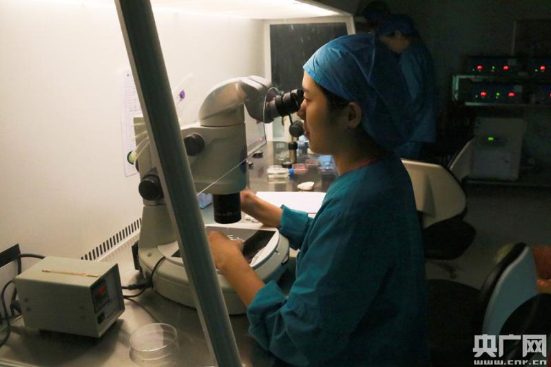 圖為張怡醫生正在進行試管嬰兒胚胎培養 (央廣網記者 黃炎秋 攝)
