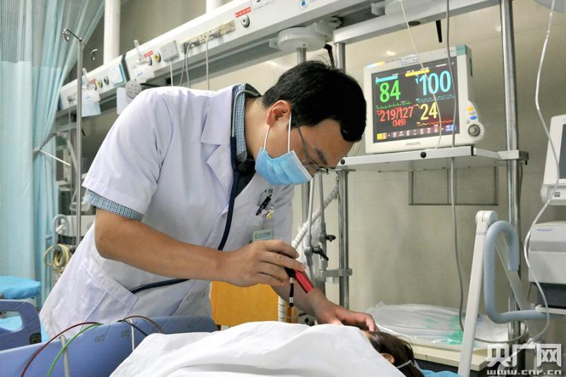 圖為羅金龍醫生正在急診科檢查昏迷患者 (央廣網發 通訊員李韻熙 陶繼東)
