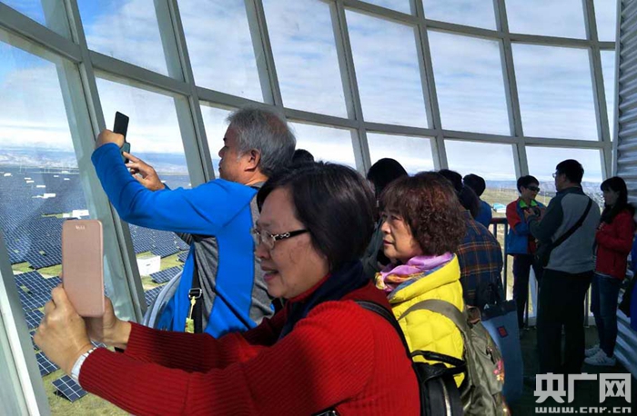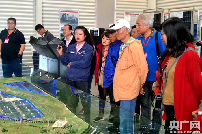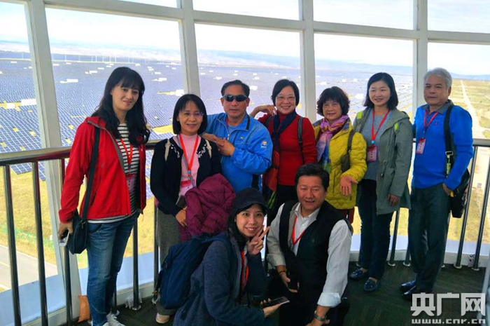 臺灣少數民族交流團成員爭相拍攝光伏電板矩陣(央廣網發 青海臺辦提供)