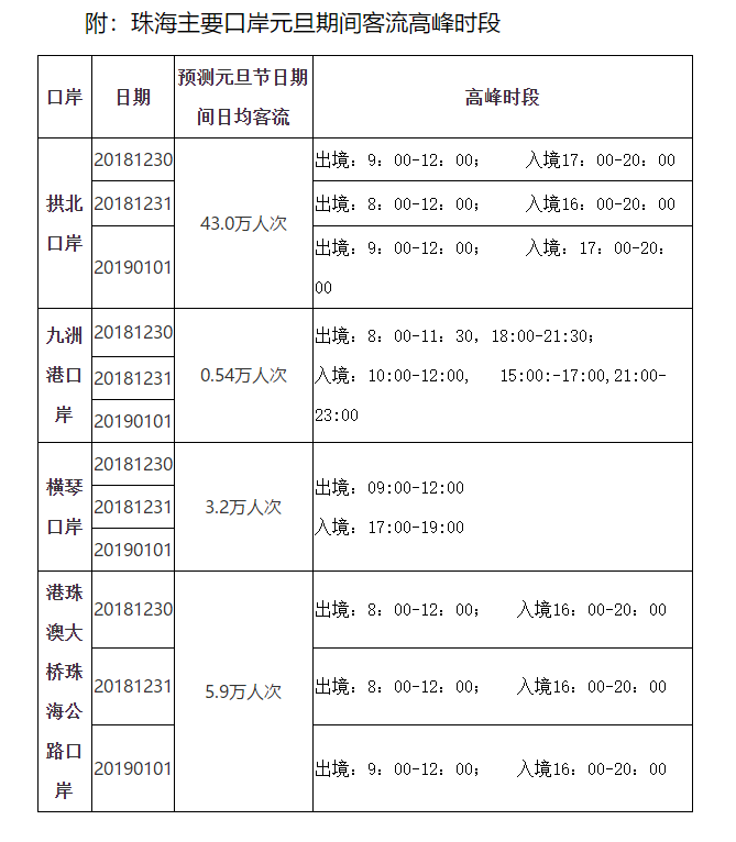 央廣網(wǎng)珠海12月30日消息(記者郭翔宇 通訊員施陽(yáng)春)記者從珠海邊檢部門(mén)獲悉,隨著2019年元旦假期的來(lái)臨,珠海各主要口岸也將迎來(lái)新年第一輪客流高峰。據(jù)珠海邊檢總站預(yù)測(cè),元旦期間拱北口岸日均客流約43萬(wàn)人次,同比增長(zhǎng)10%;考慮今年港珠澳大橋公路口岸開(kāi)通后對(duì)九洲港內(nèi)地旅客分流作用明顯,九洲港口岸節(jié)日期間內(nèi)地客流將保持低位,日均約5000人次;橫琴口岸日均客流約3.2萬(wàn)人次,同比增長(zhǎng)12%;預(yù)計(jì)港珠澳大橋珠海公路口岸元旦期間日均客流約5.9萬(wàn)人次,2018年12月30、31日兩日將出現(xiàn)客流高峰,元旦假期最后一天客流量可能有所回落。珠海邊檢總站提醒各位打算在元旦假期出入境的旅客,盡量避開(kāi)以上口岸出入境高峰時(shí)段,并盡量使用邊檢自助通道出行 。
