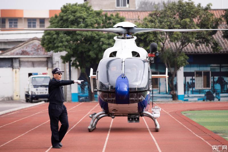 直擊佛山春運(yùn)首日,警用直升飛機(jī)護(hù)航春運(yùn)。廖鼎 攝