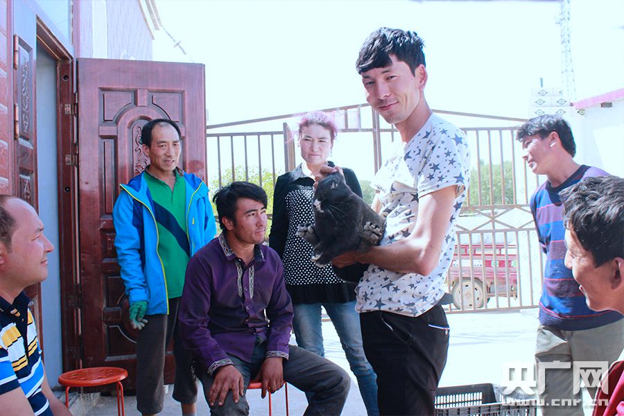 圖木舒克的村民專程驅車前來購買種兔(央廣網發 曹敦斌 攝)