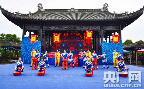 寧波市鎮(zhèn)海區(qū)澥浦鎮(zhèn)的非遺展演——澥浦船鼓(央廣網(wǎng)發(fā) 章勇濤攝)