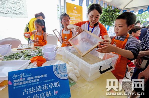 造紙、黏土、包粽子、掛香囊等傳統(tǒng)民間技藝吸引小朋友體驗(yàn)(央廣網(wǎng)發(fā) 章勇濤攝)