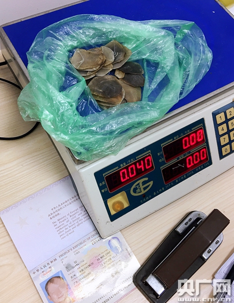 圖為湛江機(jī)場海關(guān)查獲穿山甲鱗片。(央廣網(wǎng)發(fā) 海關(guān)供圖)