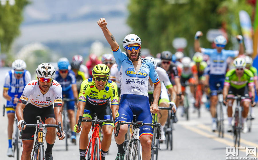 法國馬賽車隊的格魯·愛德華率先沖過終點(央廣網發 環湖賽融媒體中心供圖)