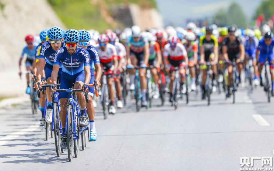 哥倫比亞麥德林車隊在集團前方領騎(央廣網發 環湖賽融媒體中心供圖)