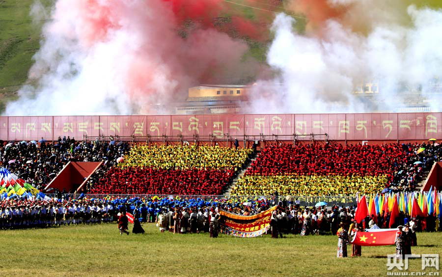 玉樹傳統(tǒng)賽馬節(jié)暨第四屆雪域格薩爾文化藝術(shù)節(jié)和三江源水文化節(jié)開幕式(央廣網(wǎng)記者張雷攝)