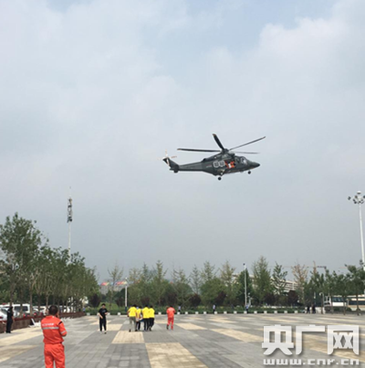 直升機災難中救援傷員演示。(央廣網見習記者 張曉琳 攝)