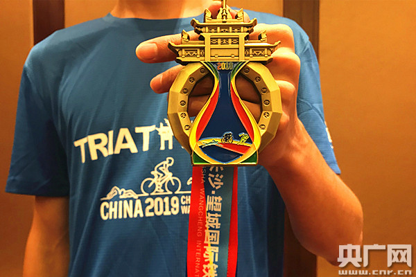 今年完賽獎牌在去年的設計上有所升級(央廣網記者 堯遙 攝)